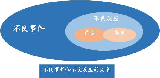 不良事件和不良反應(yīng)較大的區(qū)別就是——不良事件可以與藥物沒有因果關(guān)聯(lián)。 比如說,一個(gè)患者在服用藥物的時(shí)候,不小心摔了一跤,導(dǎo)致骨折。而這一情況的產(chǎn)生這不是藥物造成的,也就是說摔跤與服用藥物沒有因果關(guān)系,那么它只能是不良事件,而不能說是不良反應(yīng)。 嗯,或許你已經(jīng)感覺到了,不良事件的范圍比不良反應(yīng)的大。正如下面這張圖所顯示的。 |