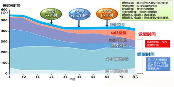 隨著年齡的增長,慢波睡眠逐漸減少,睡眠潛伏期時間延長。這也就是俗話“三十年前睡不醒,三十年后睡不著”的來源。
